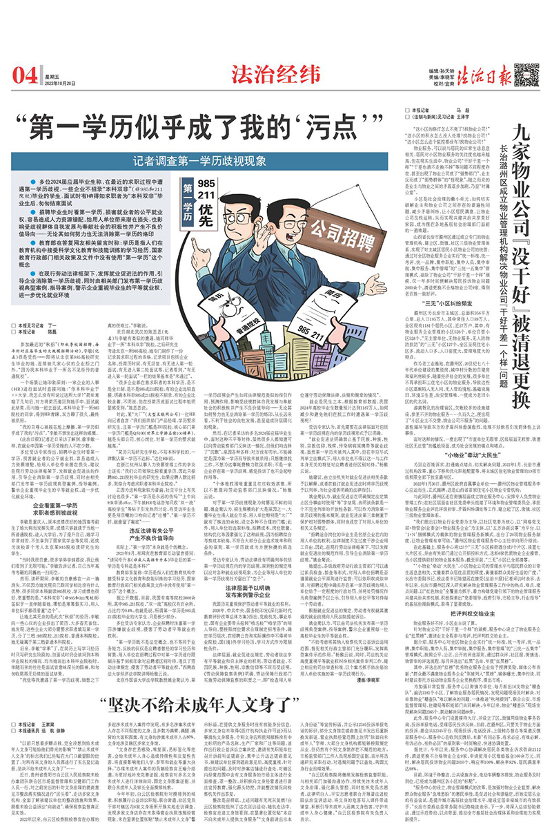 聚焦就业、教育、医疗、住房、养老等民生领域突出问题,刊发大批深度报道。其中,直指就业歧视问题的《“第一学历似乎成了我的‘污点’” 记者调查第一学历歧视现象》等3篇稿件相关话题6次冲上微博热搜榜,引发热烈反响。