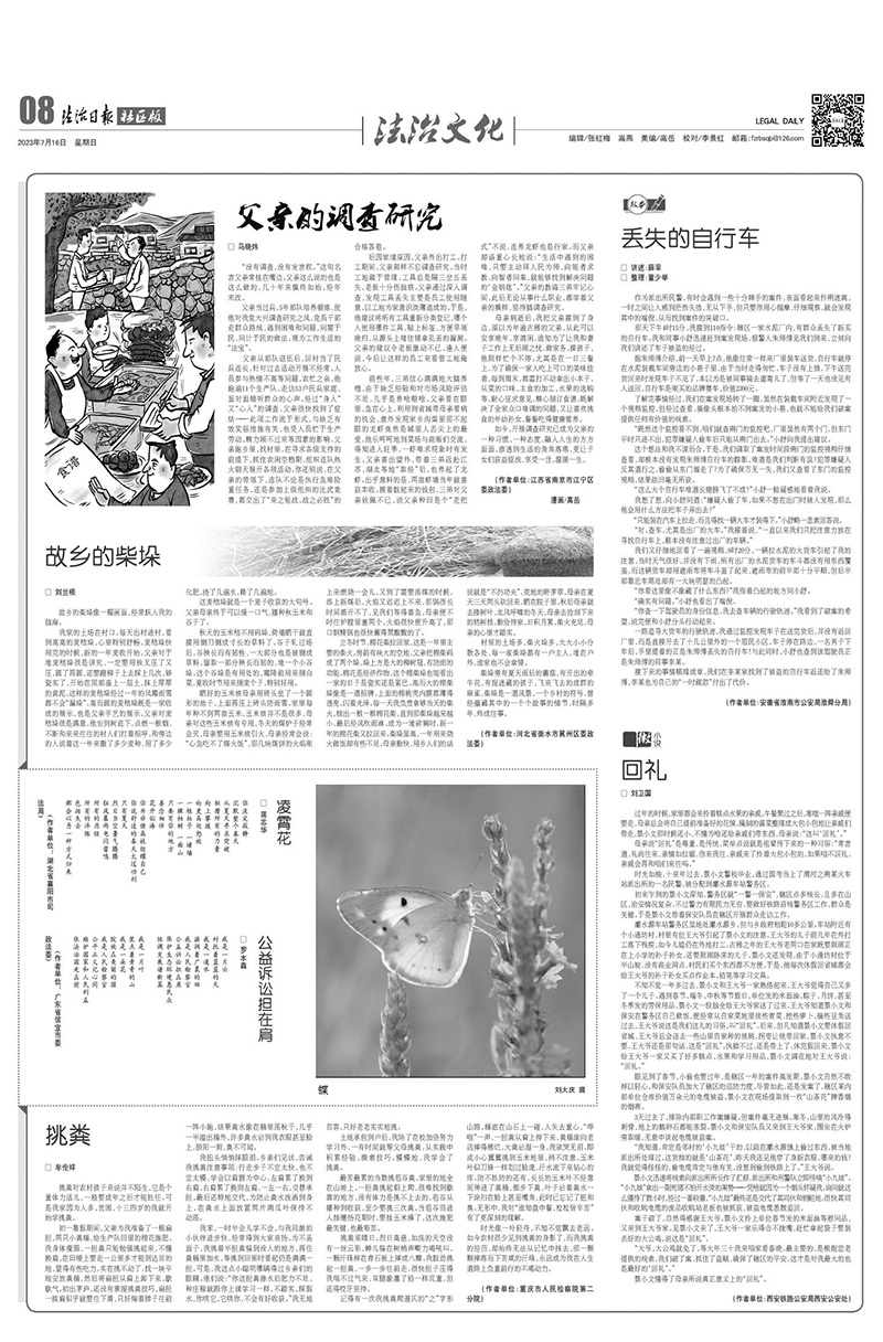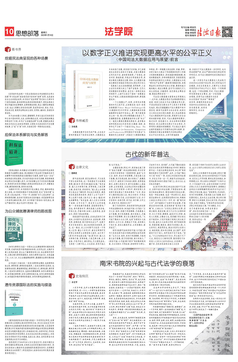 深耕法治文化,弘扬法治精神。法学院专刊开设“法律文化”“史海钩沉”“书林臧否”“毕业典礼致辞”等栏目,弘扬中华优秀传统法律文化,介绍优秀法治文化类图书书评、书序,反映我国高校法学教育蒸蒸日上图景。《法治日报·社区版》“法治文化”版2023年刊发300余篇(幅)基层政法工作者创作的文艺作品,为基层文化建设提供展示平台。