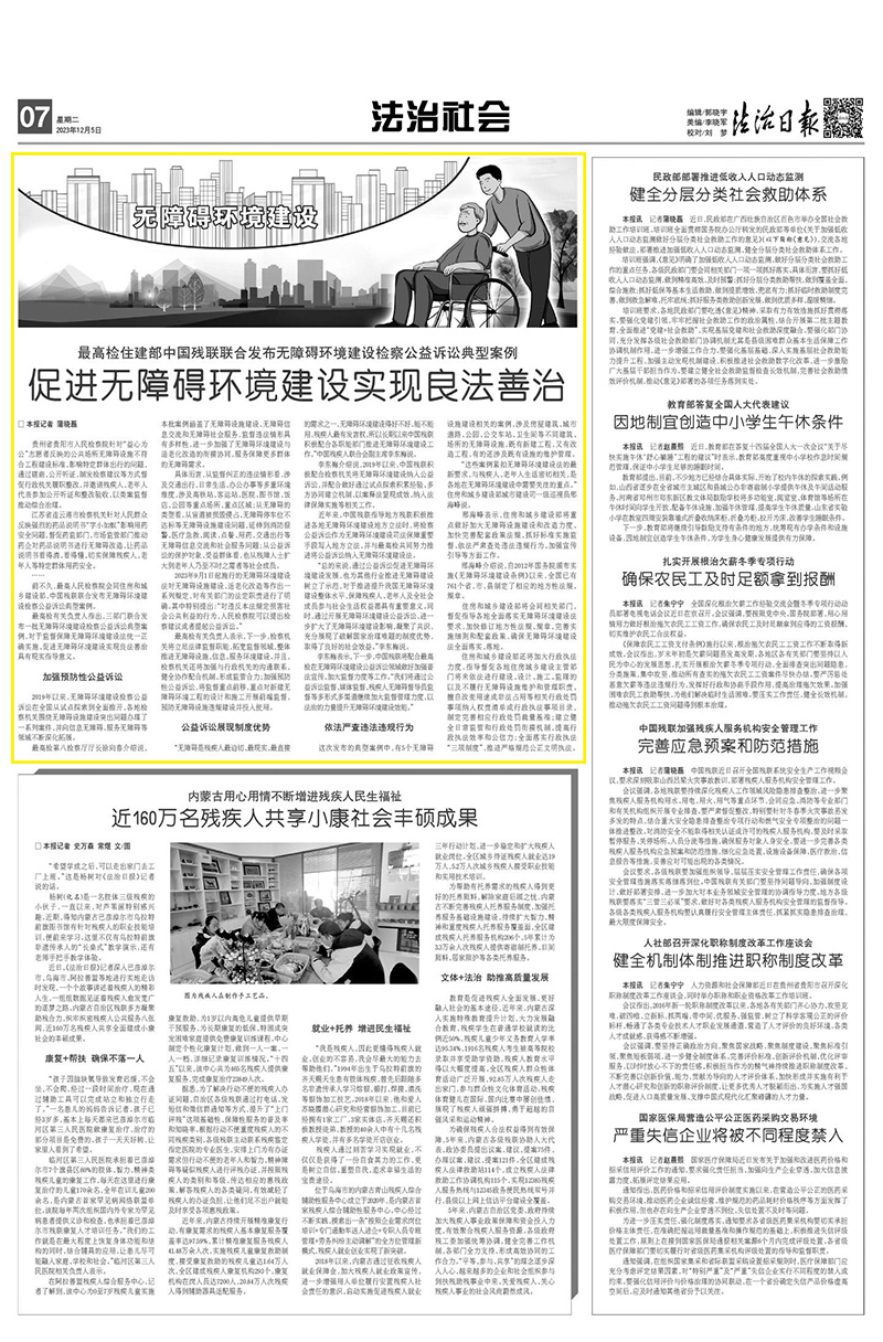 关注老年人、残疾人、妇女儿童权益保护。推出“破解数字时代老年人社交困境”“关注未成年人心理健康”等多个专题报道,常态化开设“青少年与法”专版、频道,关注“外嫁女”维权难题和残疾人权益保障体制机制建设,坚持人文关怀,坚守使命初心。
