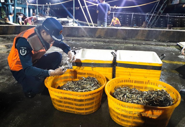 当日16时许,该局执法艇在闽粤海域巡逻时,发现1艘疑似正在进行捕捞作业的钢制船舶。随后,海警执法员立即拉响警笛,对其喊话亮明执法身份,并示意嫌疑船舶停船接受检查。但嫌疑船舶拒不停船,且试图改变航向,加速逃窜,海警执法员沉着应对,凭借丰富的执法经验,加速靠近嫌疑船舶,并抓住有利时机,跳帮登临控制嫌疑船舶。经查,船上装载扁蟹、鱿鱼等渔获物1600余公斤和国家二级保护动物海马12000余尾,涉嫌危害珍贵、濒危野生动物和禁渔期非法捕捞水产品。
