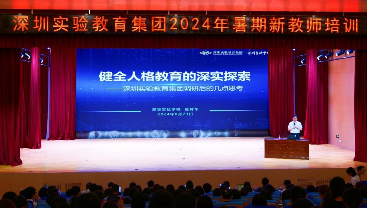 为全面贯彻党的教育方针,加强教师队伍建设,积极响应新时代强势计划要求,提升学校教育教学质量,快速提升新教师职业素养,开学前夕,广东深圳实验教育集团利用暑期在深圳实验学校初中部举行新教师培训会。深圳实验学校党委书记、深圳实验学校高中园联合党委书记夏育华出席培训会并作主旨讲座。深圳实验学校副校长、高中部执行校长邓旭等学校领导、小学、初中、高中各班级优秀班主任代表,深圳市教科院基础教育研究中心代表、资深教师与教科研专家等九部一园新教师300余名参加培训,共同为教师们适应角色转换提供文化引领,出谋划策、指点迷津、保驾护航。