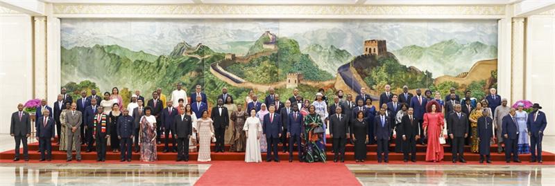 9月4日晚,国家主席习近平和夫人彭丽媛在北京人民大会堂举行宴会,欢迎来华出席中非合作论坛北京峰会的非方及国际贵宾。这是宴会前,习近平和彭丽媛同贵宾们集体合影留念。新华社记者 丁林 摄