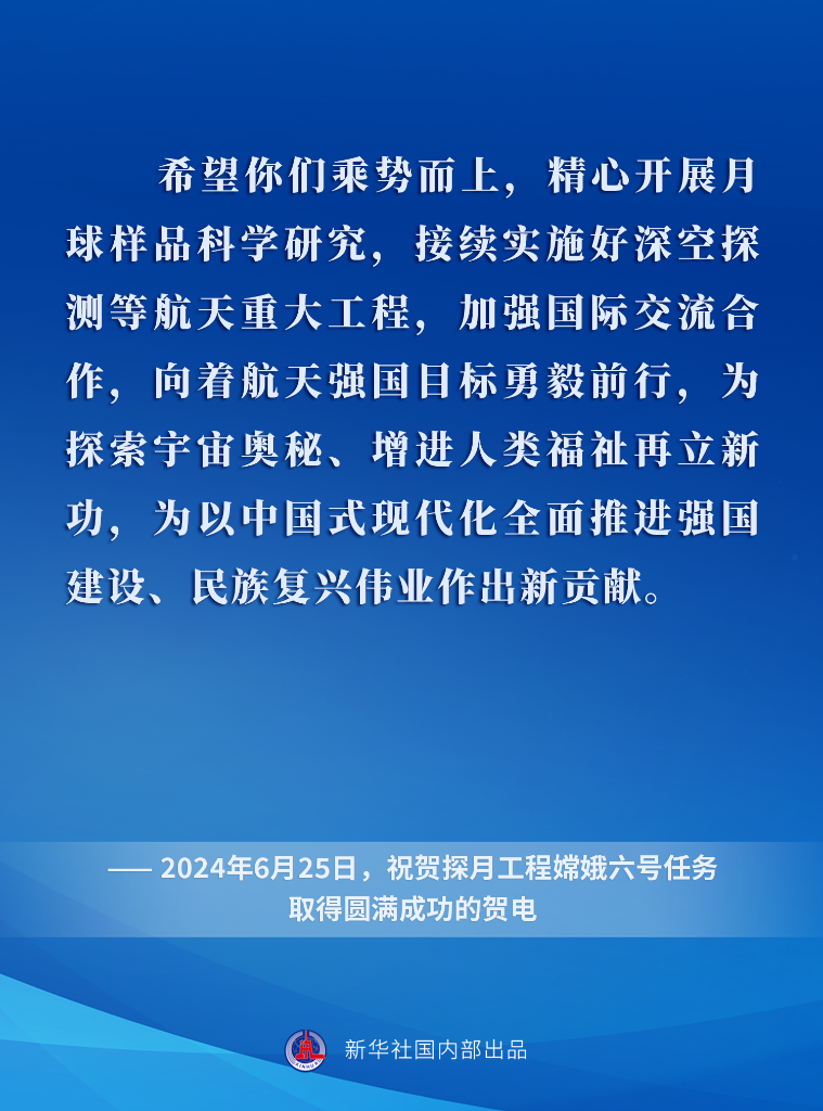 党的十八大以来,在以习近平同志为核心的党中央关心引领下,中国探月工程取得举世瞩目的重大成就,为探索宇宙奥秘、增进人类福祉屡立新功,为以中国式现代化全面推进强国建设、民族复兴伟业作出卓越贡献。