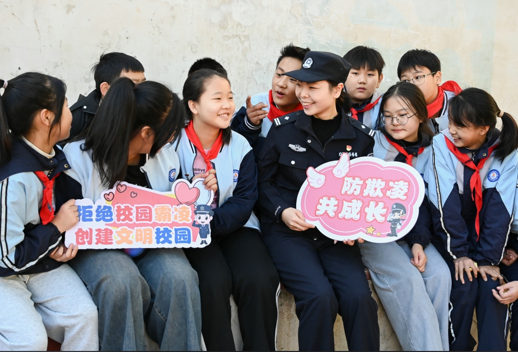 图为和县公安局历阳派出所民警向学生们宣传预防校园欺凌知识