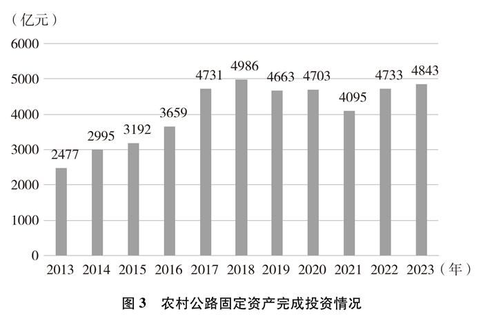 加大各级财政资金支持力度。政府投入在农村公路建设养护中发挥至关重要的作用,中央通过车辆购置税收入补助地方资金、中央预算内投资、成品油税费改革转移支付等资金渠道,省、市、县三级政府加大各类财政资金投入支持农村公路发展。地方政府将农村公路管理机构运行经费和人员基本支出纳入地方一般公共预算,将农村公路发展纳入地方政府一般债券重点支持范围。农村公路日常养护资金按照不低于县道每年每公里10000元、乡道每年每公里5000元、村道每年每公里3000元的标准执行。指导各地用好用足农村客运补贴资金。十年来,累计完成农村公路固定资产投资4.3万亿元,累计投入养护资金1.1万亿元,其中政府资金均占80%左右。每年中央财政投入89亿元农村客运补贴资金。