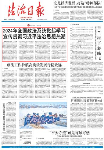 本报北京1月12日讯 记者蔡长春 全国政法系统坚持不懈用习近平新时代中国特色社会主义思想凝心铸魂,2024年以来,持续深入学习宣传贯彻习近平新时代中国特色社会主义思想特别是习近平法治思想,掀起学习宣传贯彻习近平法治思想热潮。