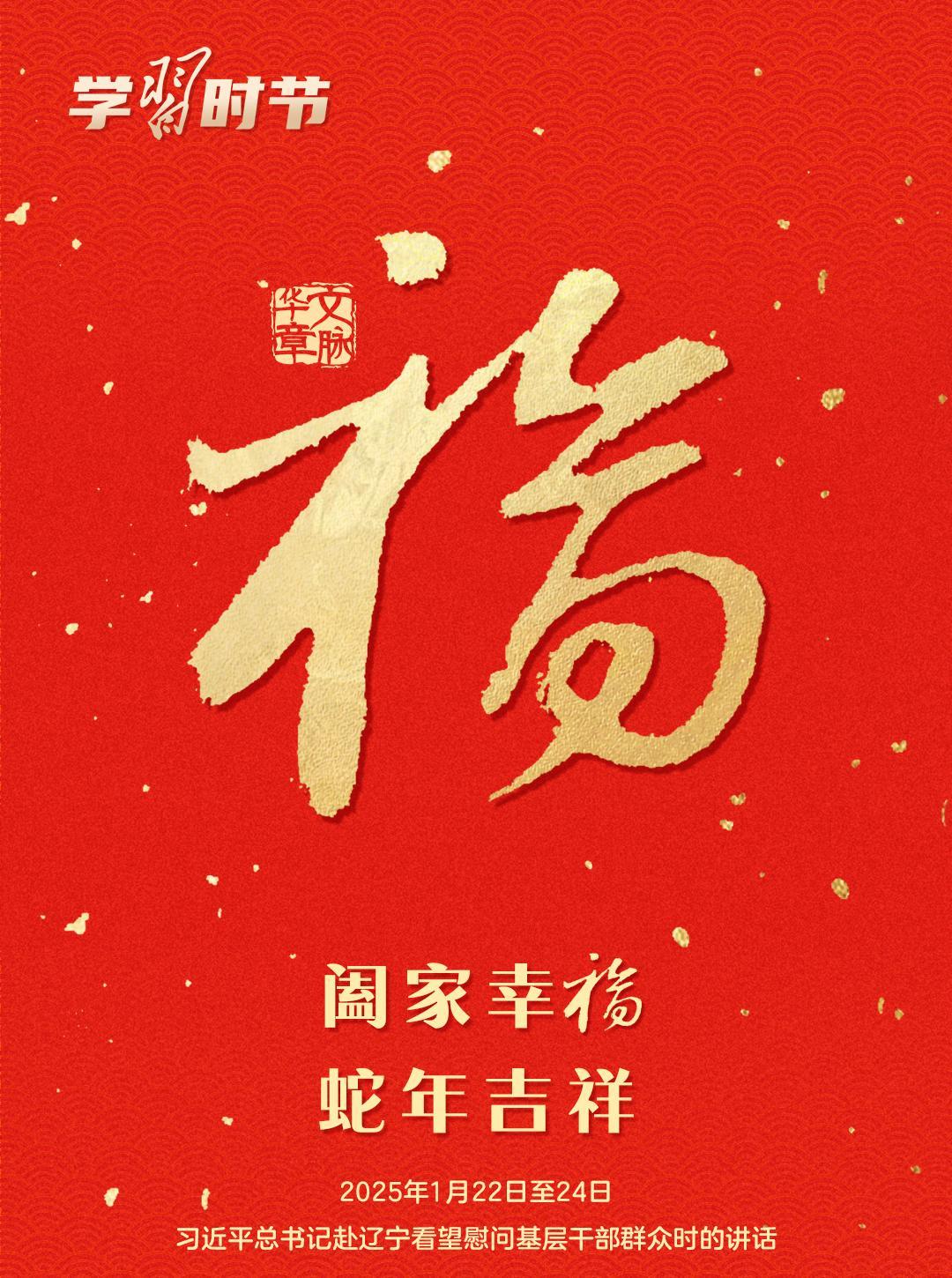 五千多年的中华文明,“福”字贯穿其中。它是中华民族的深层文化基因,也是我们心中最吉祥的字眼。一个“福”字不仅寄托了人们对幸福生活的祈愿,也承载着对美好未来的不懈追求。每逢新春,习近平总书记都会给大家送上真挚的祝福。声声送祝福,句句暖人心。值此乙巳蛇年春节,这份来自总书记的新春祝福,让我们一起聆听。