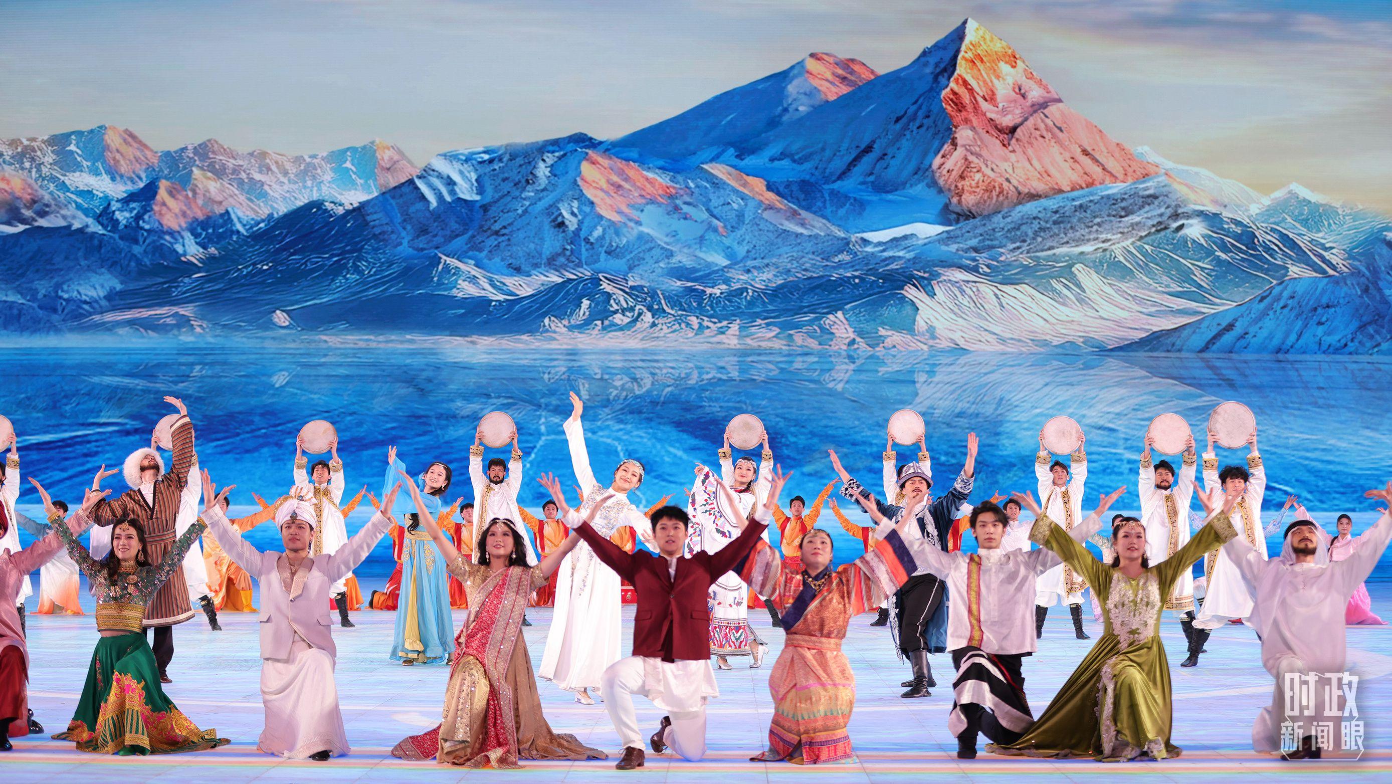 文艺表演分为上篇《炽热冰雪》、中篇《燃情时速》、下篇《山高水长》,通过《长歌颂冰河》《荣光耀未来》《驰骋天地间》《璀璨嘉年华》《携手情久长》《万里共和鸣》等节目,展现化“极寒”为“极美”“极燃”“极暖”的意蕴。