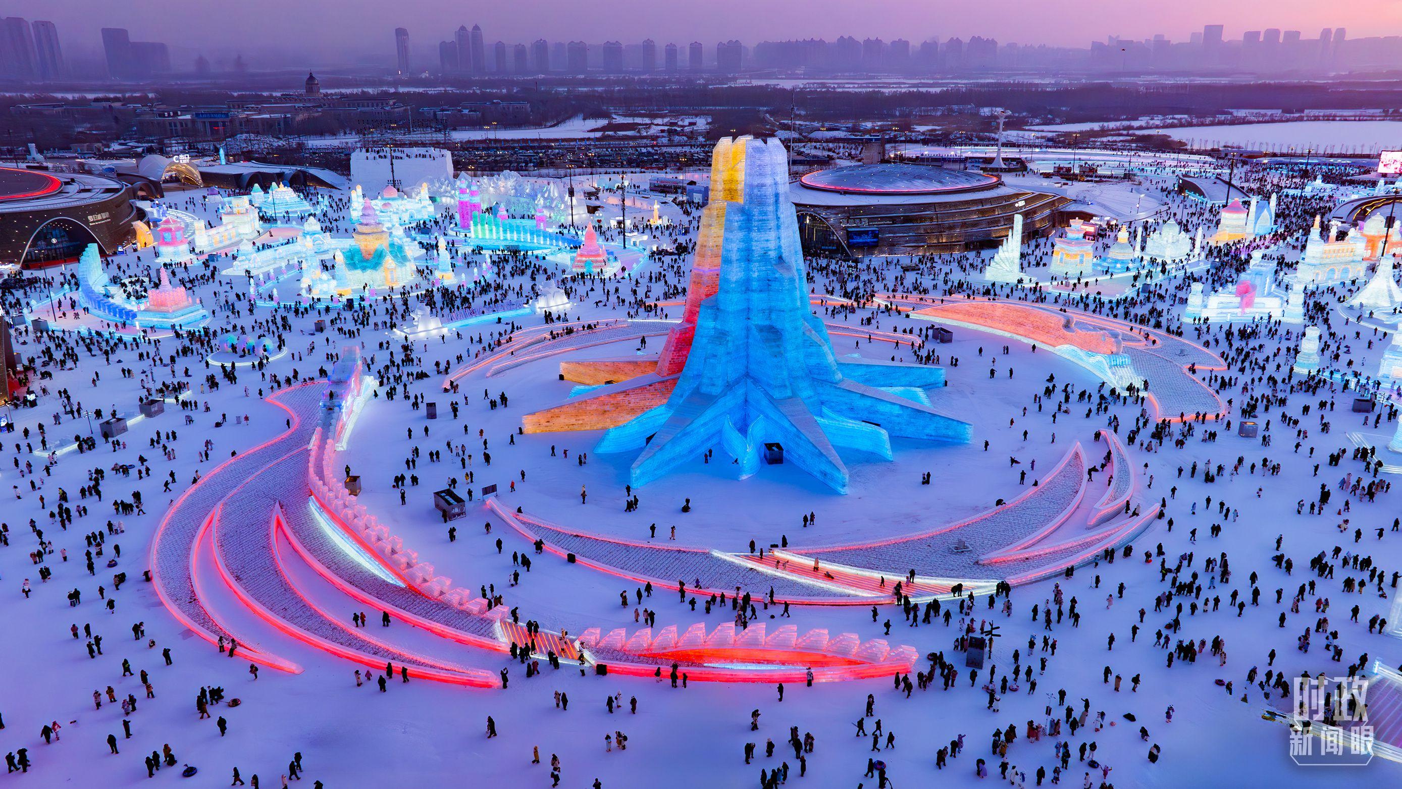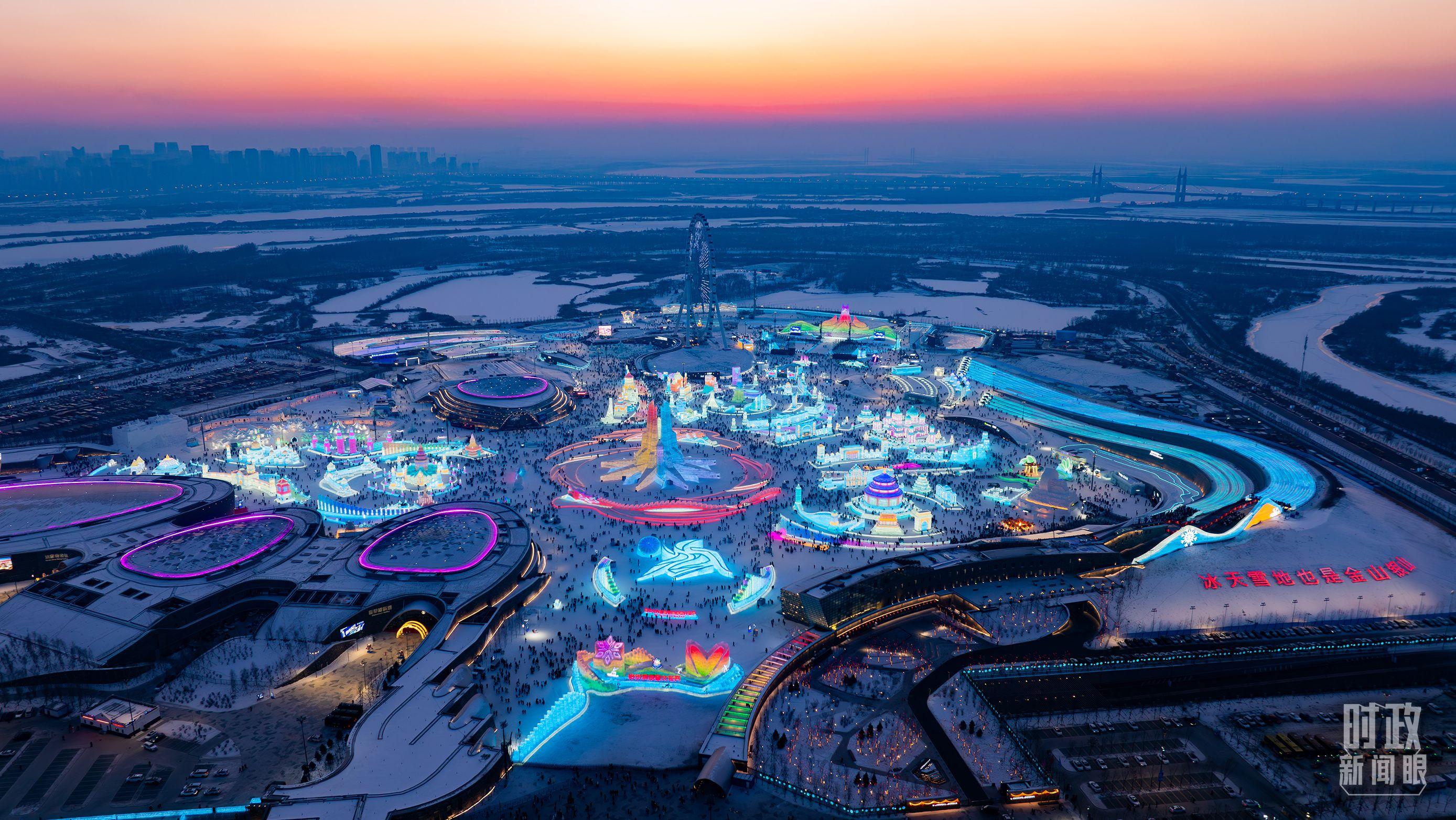 △俯瞰哈尔滨冰雪大世界。(总台记者邵冲拍摄)
