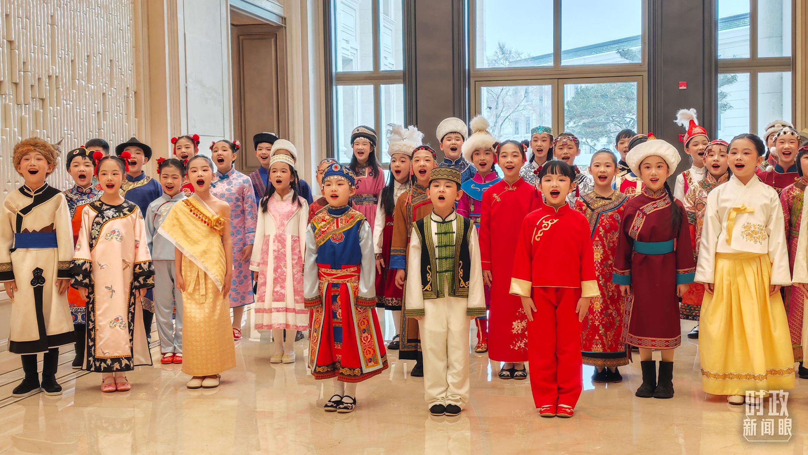 △欢迎宴会现场,少年儿童正在合唱黑龙江民歌《乌苏里船歌》。(总台央视记者闫耀东拍摄)