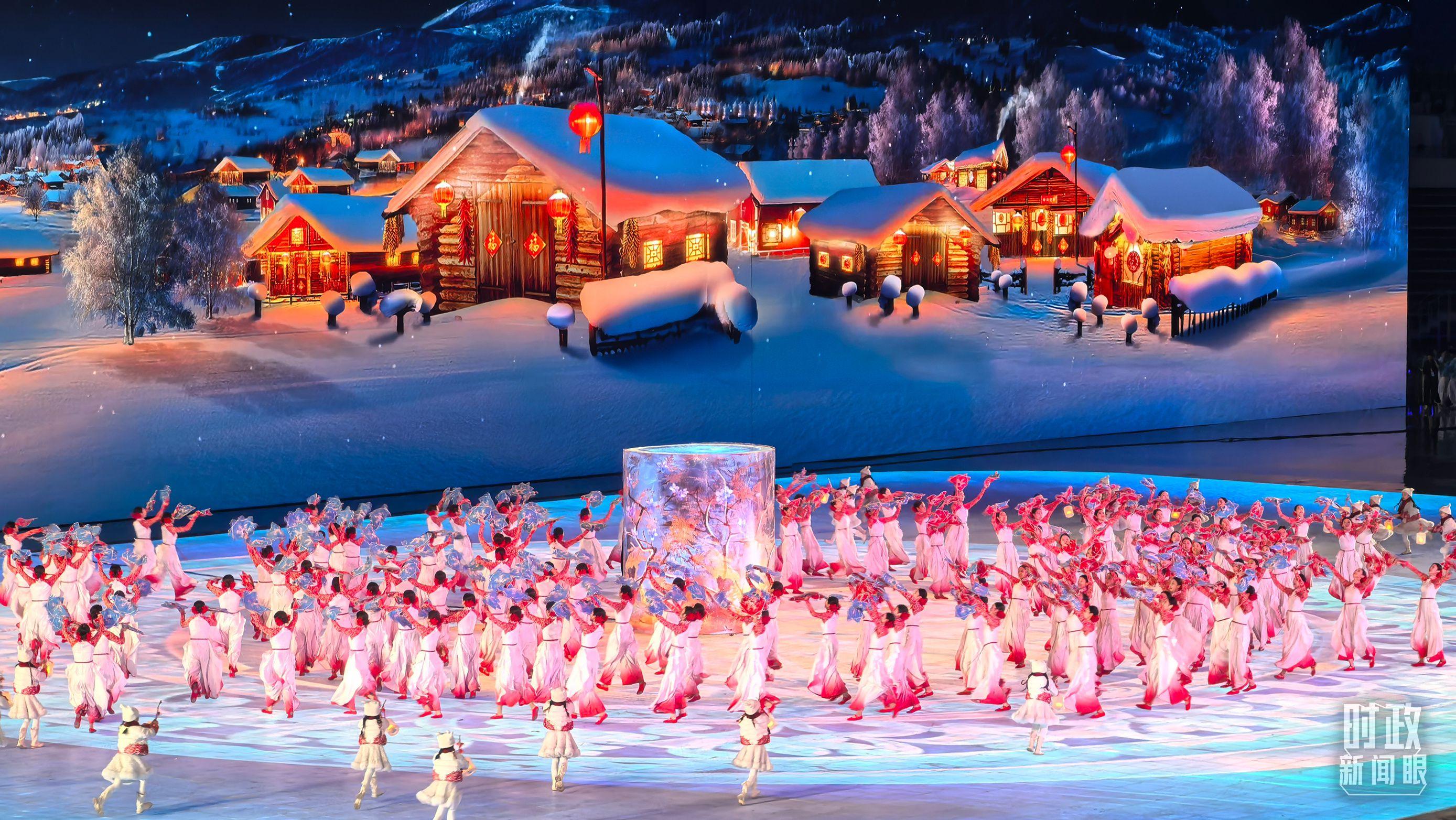开幕式以“哈尔滨、中国、亚洲”的地域递进层次展开。一盏冰灯映照新春,讲述从启梦、追梦到圆梦的冰雪梦想。从“冰晶蓝”到“中国红”,旋转的“冰凌花”尽显喜迎八方宾朋的热情。
