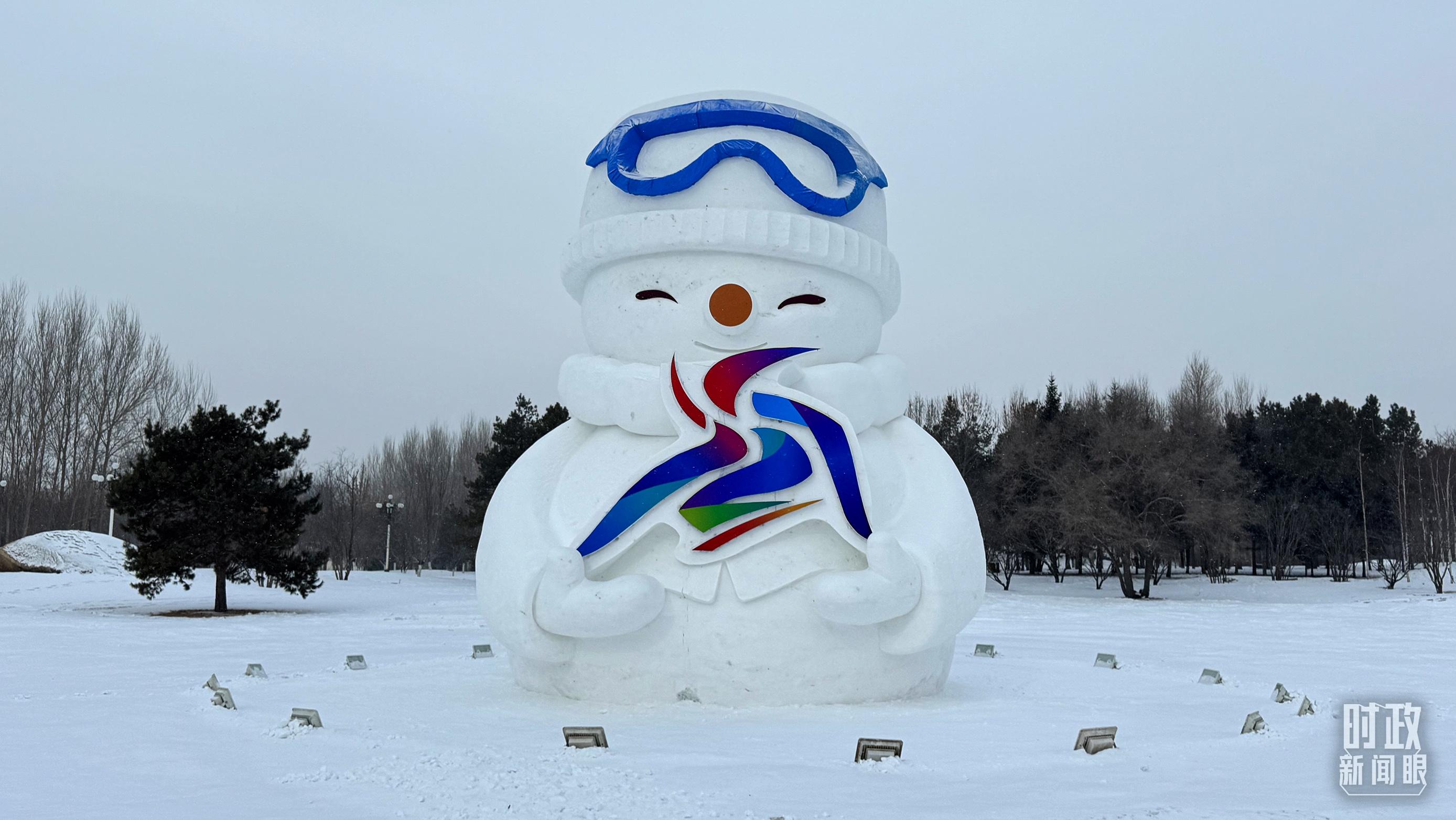 △装饰有亚冬会会徽元素的雪人。(总台央视记者蒋硕拍摄)