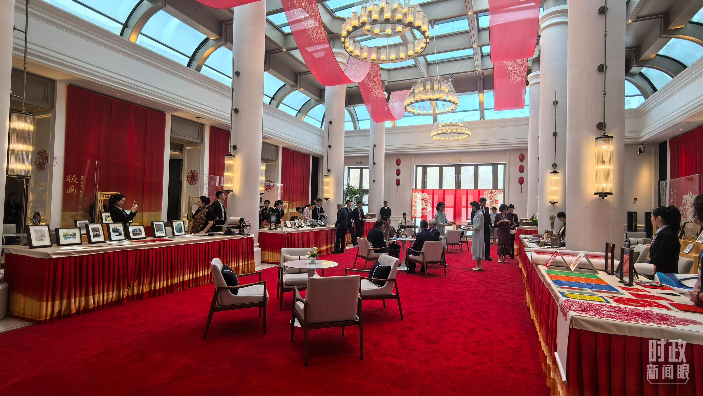 △欢迎宴会开始前的黑龙江非物质文化遗产展示。(总台央视记者史伟、央广记者马喆拍摄)