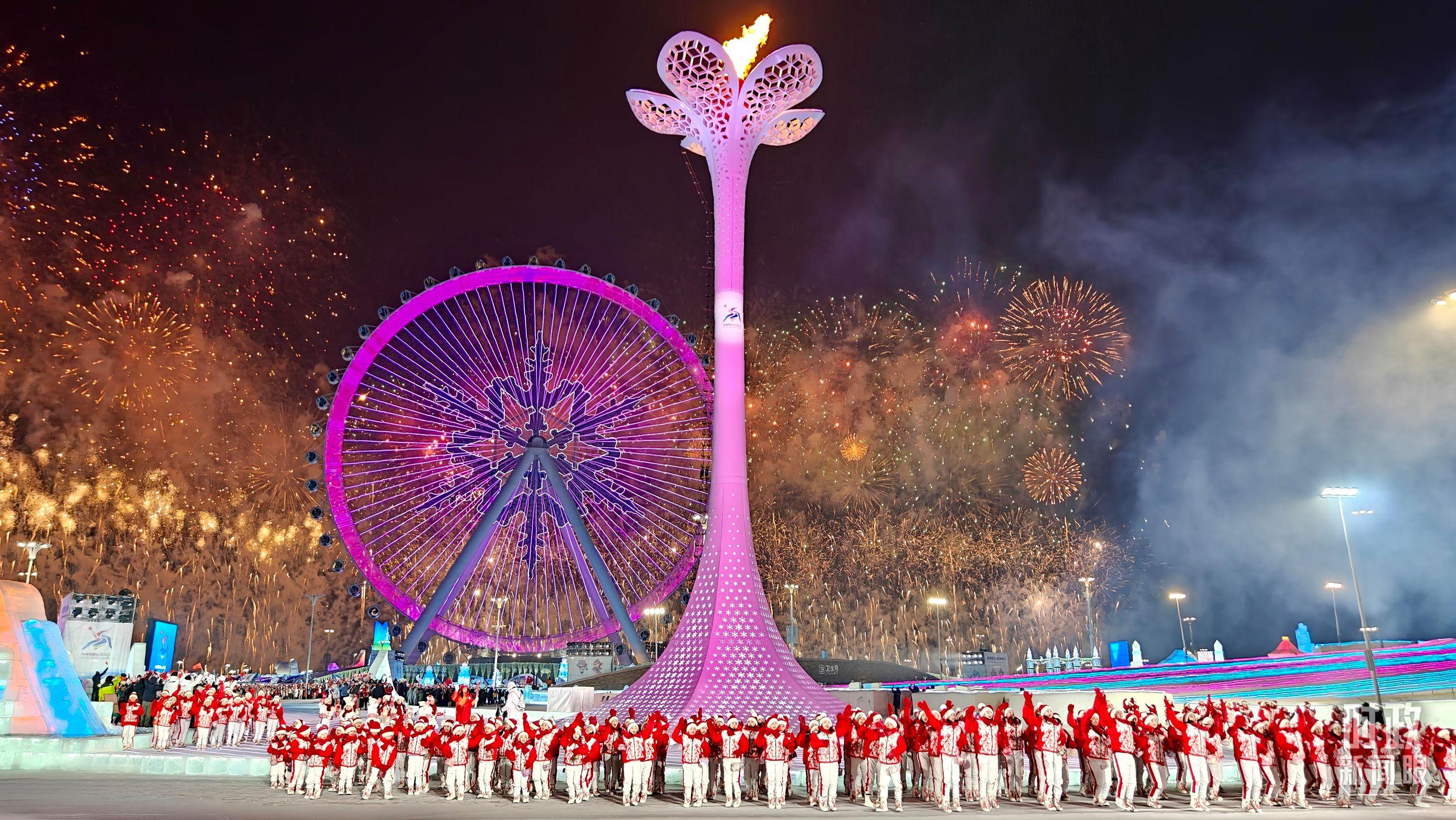 △哈尔滨亚冬会主火炬点燃。(总台记者任秋宇拍摄)