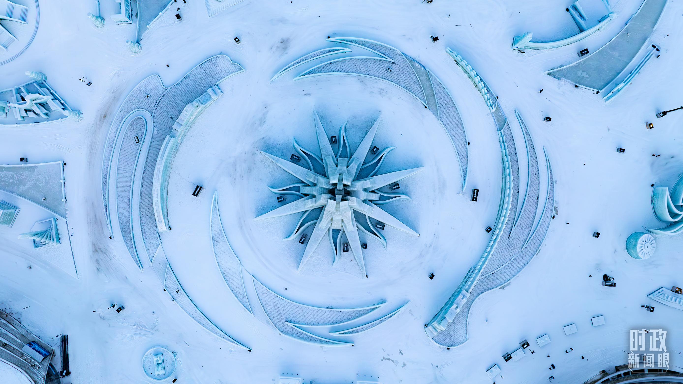 △哈尔滨冰雪大世界“雪花”图案。(总台记者邵冲拍摄)