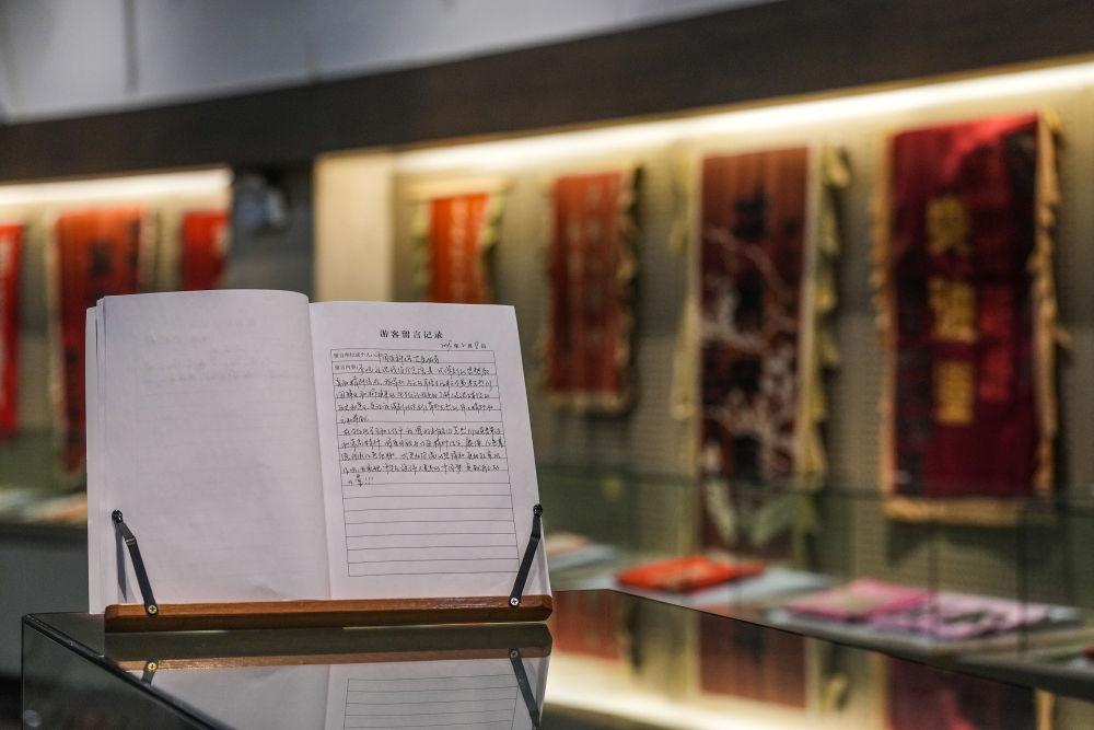 2025年3月31日,参观者在江苏省徐州市淮海战役纪念馆留言簿上留言。