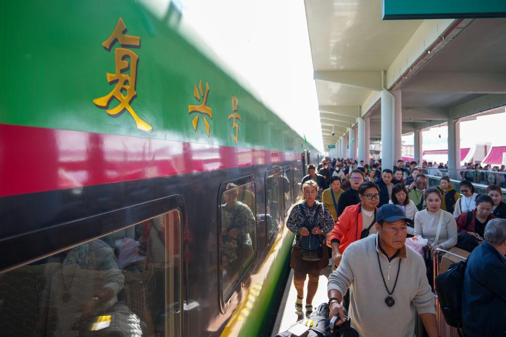 2024年12月3日,中老铁路D87次国际旅客列车抵达云南磨憨口岸。位于云南省最南端的磨憨,地处中老铁路、昆曼国际公路的关键节点,是我国通往老挝的国家级陆路口岸。中老铁路国际旅客列车极大促进了铁路沿线的文化传播与交流,进一步推动中老两国友好往来,铁轨的“硬联通”密切了中老两国人民的“心联通”。