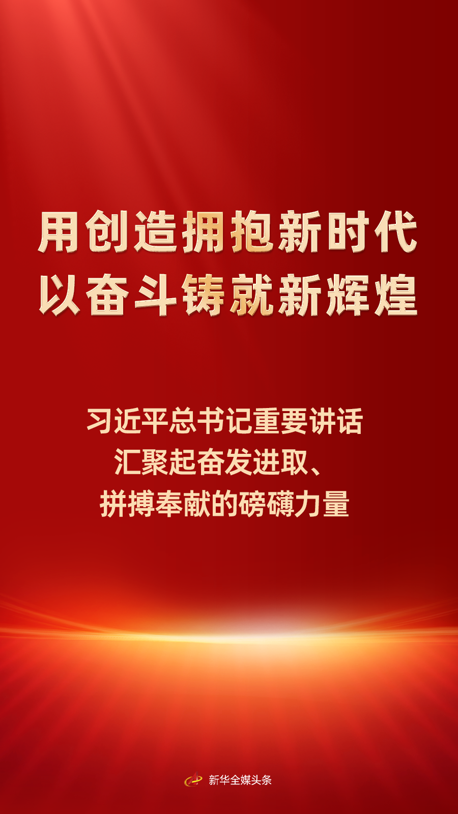 “新时代新征程,必须紧紧围绕党的中心任务,汇聚起工人阶级和广大劳动群众的磅礴力量,脚踏实地、奋发进取、拼搏奉献,一步一个脚印把实现中华民族伟大复兴的宏伟蓝图变成现实。”