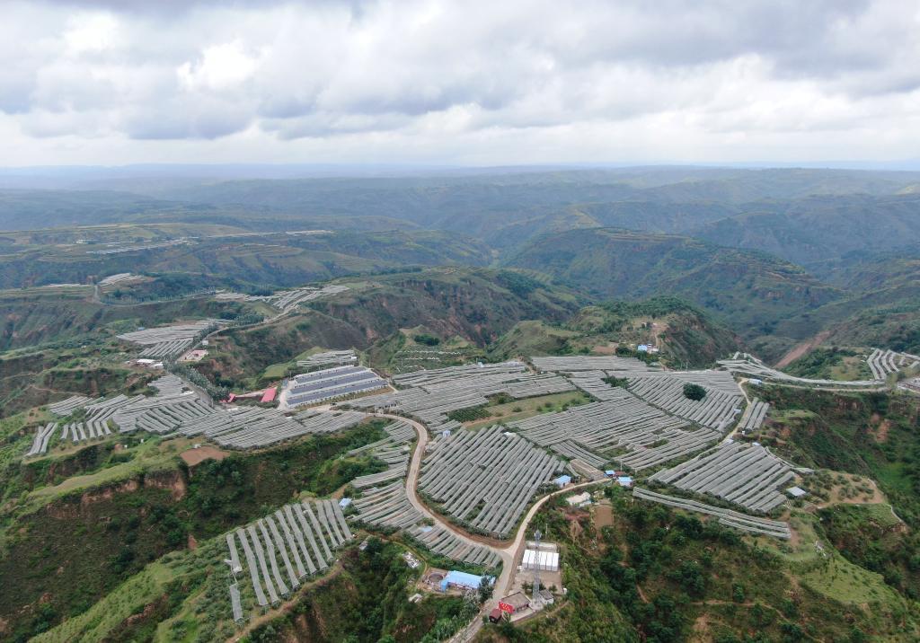 陕西省延安市延川县文安驿镇梁家河村山地苹果园(无人机照片,2023年6月28日摄)。新华社记者 张博文 摄