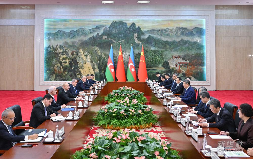 8月31日上午,国家主席习近平在天津迎宾馆会见来华出席2025年上海合作组织峰会和纪念中国人民抗日战争暨世界反法西斯战争胜利80周年活动的阿塞拜疆总统阿利耶夫。