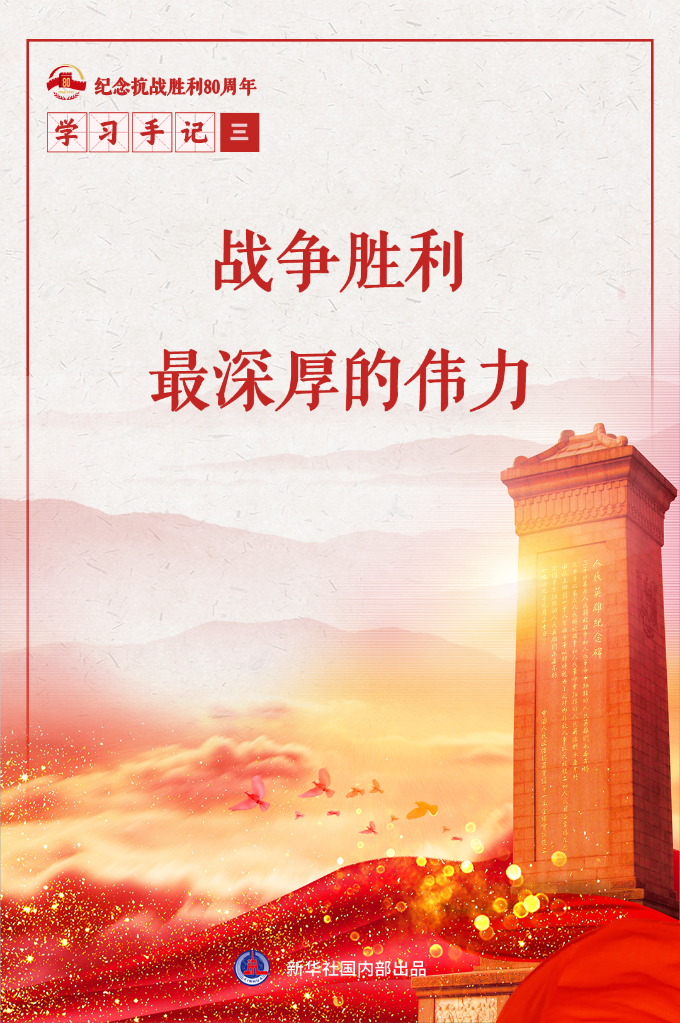 民族危亡之际,中国人民迸发出势不可挡的力量。中国人民抗日战争胜利是全体中华儿女勠力同心、以弱胜强的雄浑史诗,显示了中国人民和中华儿女坚不可摧的磅礴力量。