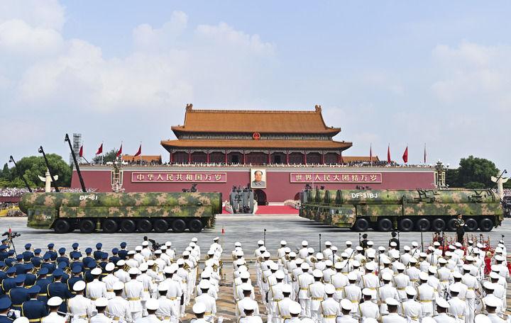 2025年9月3日,纪念中国人民抗日战争暨世界反法西斯战争胜利80周年大会在北京隆重举行。这是核导弹第一方队通过天安门广场。新华社记者 李鑫 摄