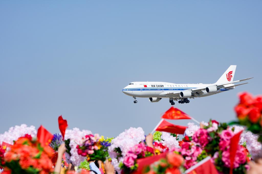 机场到住地沿途,花团锦簇、彩旗飘扬。人群如潮水涌到道路两旁,挥动的手臂与旗帜汇成海洋,一颗颗心激动澎湃。习近平总书记向沿途群众频频挥手、亲切致意。