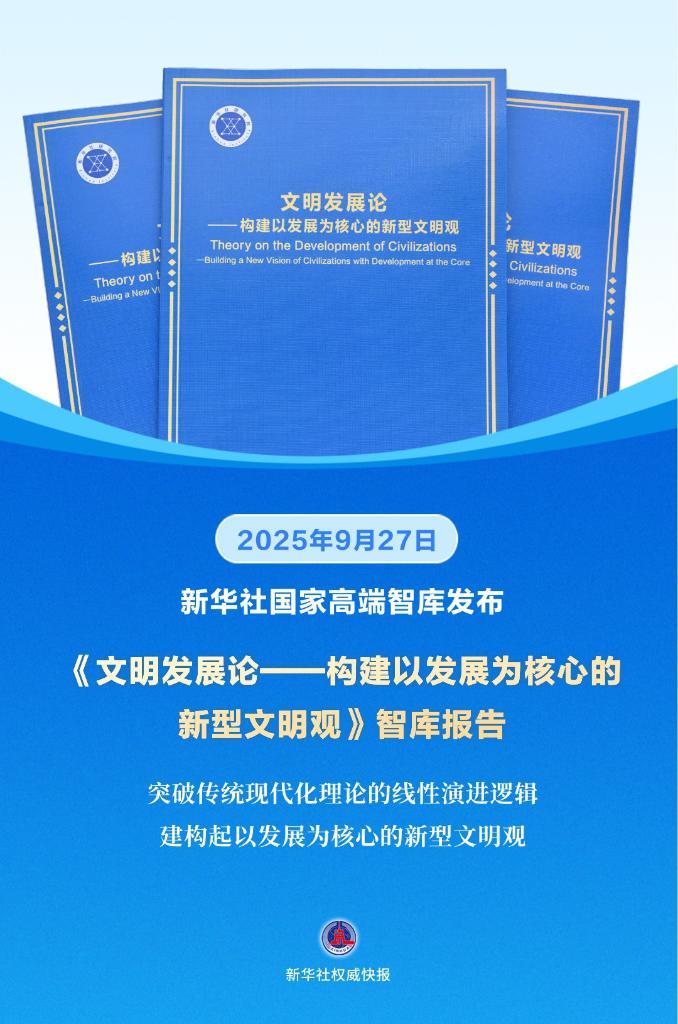 新华社广州9月27日电(记者吉哲鹏、邓瑞璇)27日,新华社国家高端智库在广州召开的习近平文化思想国际学术研讨会上,面向全球发布《文明发展论——构建以发展为核心的新型文明观》智库报告。