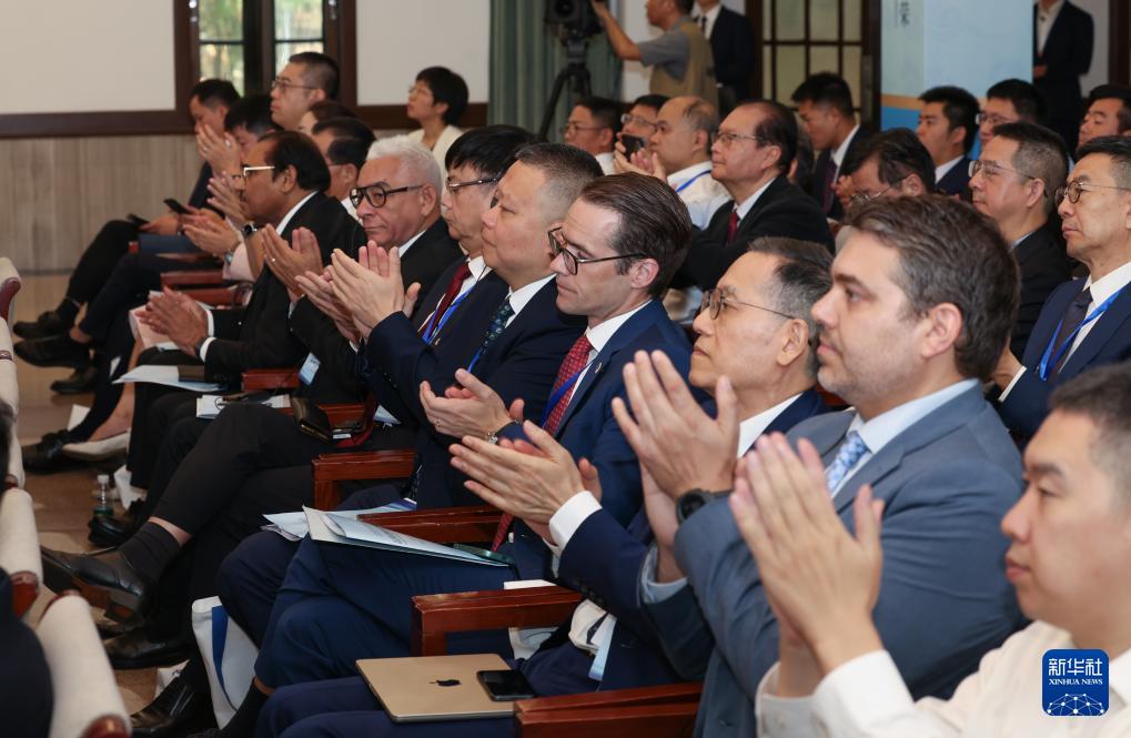 9月27日,新华社国家高端智库在广州召开的习近平文化思想国际学术研讨会上,面向全球发布《文明发展论——构建以发展为核心的新型文明观》智库报告。这是中外学者参加研讨会。新华社记者 刘大伟 摄