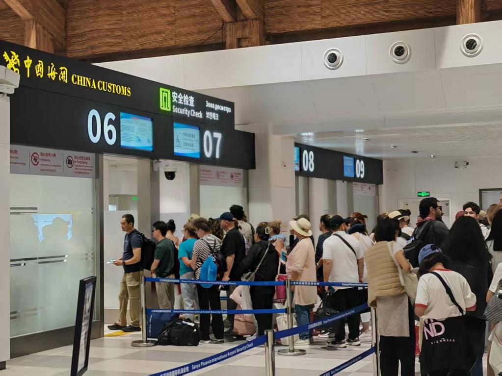 外籍旅客在三亚凤凰国际机场排队等待入境通关安检。新华社记者 刘邓 摄