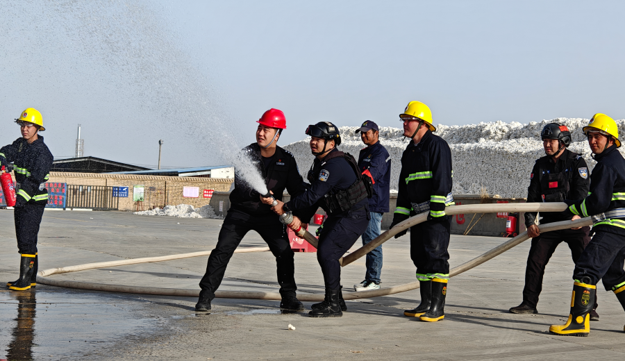 刚结束辖区宣传,他便带领民辅警直奔某农工贸有限责任公司,联合企业开展消防安全实战演练,以“前置宣传+沉浸式演练”双措并举,为棉花加工企业筑牢安全生产“防火墙”。