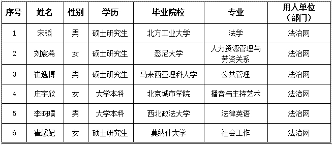 以上拟录用人员公示期为5个工作日,公示期自2025年10月23日至2025年10月29日。如对以上公示人员有异议,请致电法治日报社人力资源部。