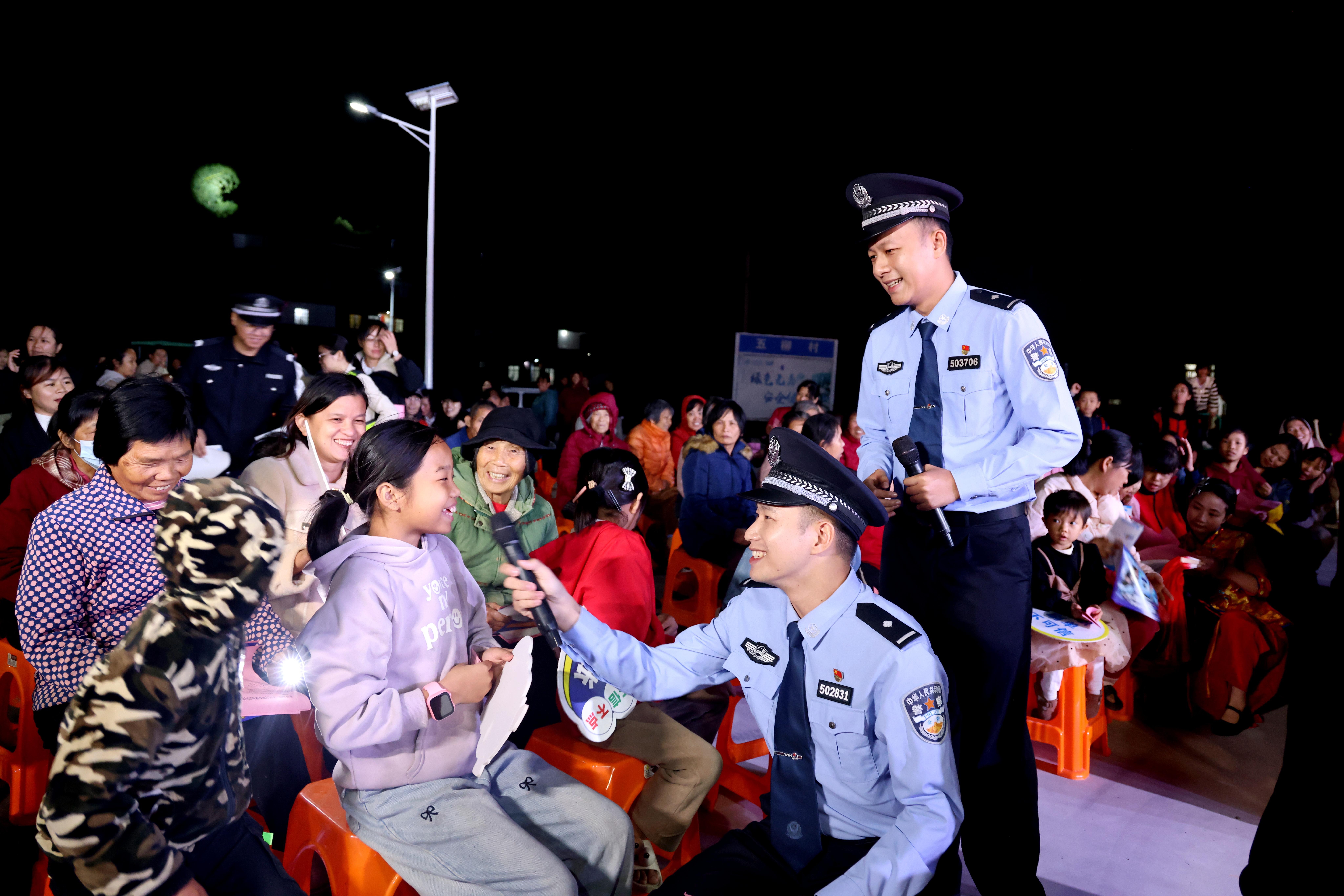 晚会期间,民警将禁毒反诈知识融入流行歌曲改编,并设置互动问答环节。针对未能进入主会场的观众,民警延伸宣传触角,场外同步发放、讲解宣传资料。“这样的宣传我们记得住!既看了节目,又学了知识。”村民李大爷说。