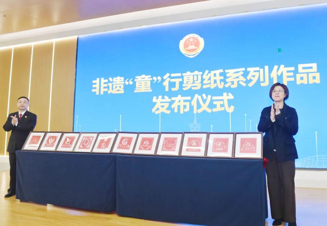 在“油麻地小学教室”,孩子们正围绕在非遗代表性传承人王柏林老师身边,全神贯注于手中的红纸与剪刀。随着巧手翻飞,象征守护的检察徽章、携手普法的童趣形象等渐次浮现。“剪刀不能越线,正如行为不能逾越法律底线。”王柏林一边创作,一边讲解。“剪”去违法犯罪行为的边角,“刻”下规则意识的轮廓,这一刻,手艺传承与法治浸润悄然交织。现场,嘉宾们还参观了法治教育实践点与儿童法治绘画作品展。孩子们笔下的“检察官超人”“法律保护我家”等画作,以童真视角赋予法治温暖色彩。