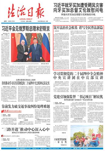 2013年2月,中共中央政治局就全面推进依法治国进行第四次集体学习。习近平总书记在主持学习时强调,要深入开展法制宣传教育,在全社会弘扬社会主义法治精神,引导全体人民遵守法律、有问题依靠法律来解决,形成守法光荣的良好氛围。