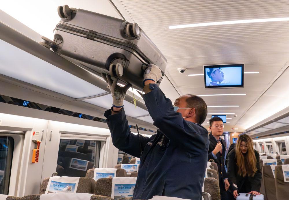 2026年2月2日,在湖北武汉汉口火车站,中铁快运服务人员在列车到站后拿取乘客的行李。今年春运,已购车票的旅客可以在铁路12306App、微信小程序上预约“轻装行”服务,有效减轻携带大件行李出行的负担。该服务自2025年6月开始施行,目前试点覆盖30座车站。