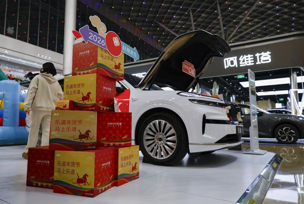 2026年2月8日,市民在北京合生汇商场了解新能源汽车。春节临近,新能源车企纷纷推出优惠政策,通过金融优惠、赠送礼品等方式吸引消费者购买。此外,近日北京、上海、天津等多地发布2026年汽车以旧换新相关细则,报废更新最高补贴2万元,置换更新最高补贴1.5万元。消费者更新需求加快释放,与产业转型良性互动,推动消费市场扩容“焕新”。