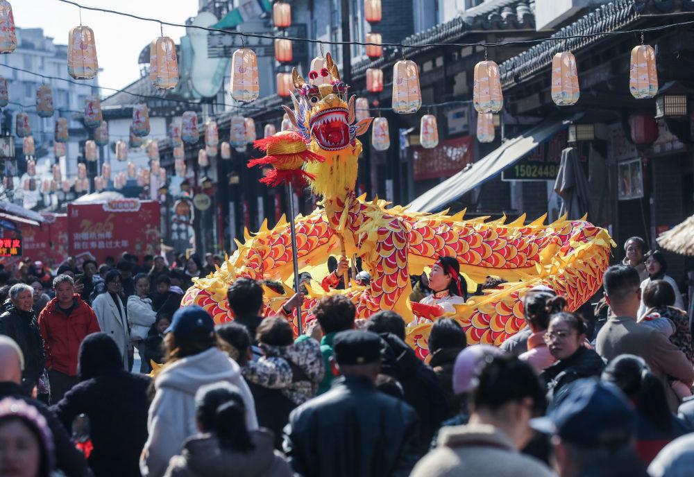 2026年2月8日,游客在浙江寿昌古镇老街上观看传统舞龙表演。近期,浙江省建德市寿昌古镇举办传统民俗迎新春活动,民俗踩街、舞龙舞狮、马年主题灯展等活动,吸引八方游客前来体验古镇传统年味,进一步激活新春消费市场,为当地文旅经济发展注入新动能。