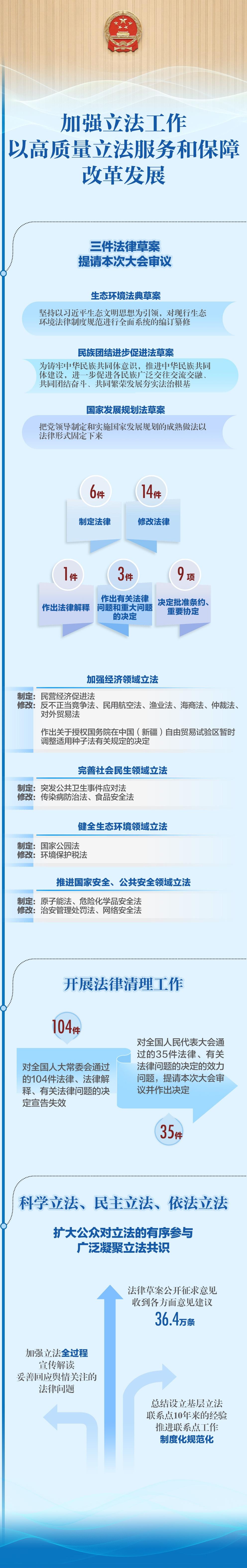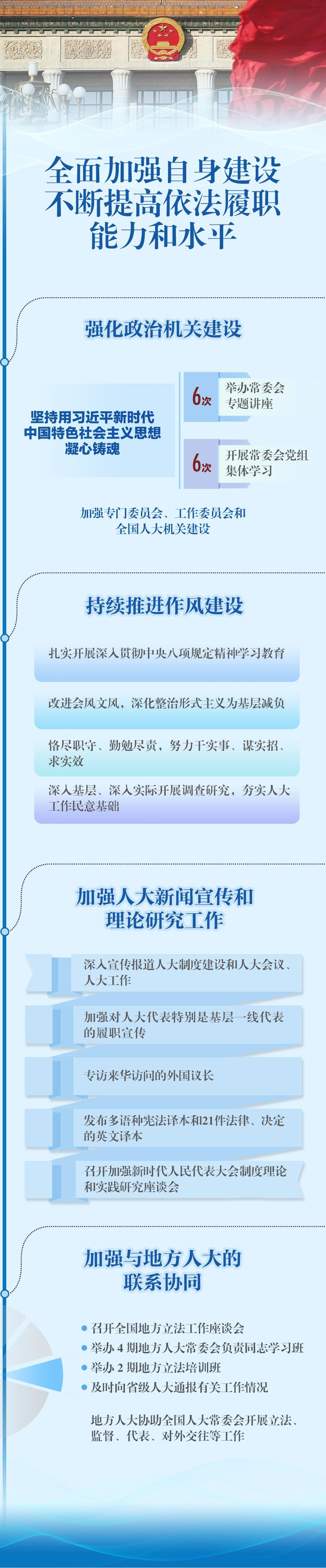 制定修改法律24件,听取审议22个监督工作报告,交办代表议案269件、建议9160件……全国人大常委会工作报告9日提请全国人代会审议。过去一年人大工作有哪些特点亮点,今后一年将完成哪些重要任务?
