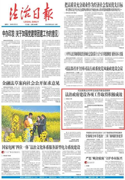 3月20日公布的《司法部2025年法治政府建设年度报告》(以下简称《报告》)显示,2025年司法部履职尽责、实干笃行,推进《法治政府建设实施纲要(2021—2025年)》顺利收官,各项工作取得积极成效。