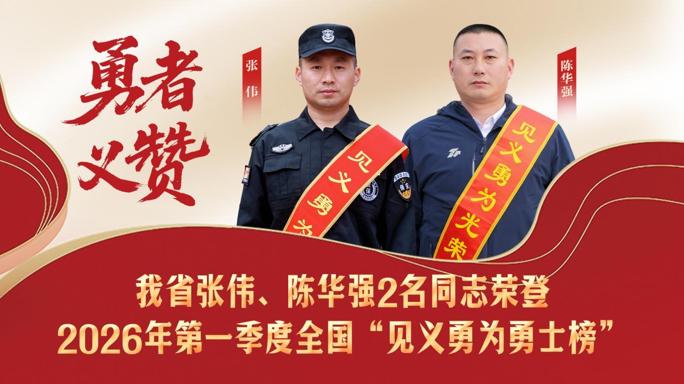 近日,中央政法委发布2026年第一季度全国“见义勇为勇士榜”,64位见义勇为勇士上榜。江苏省南京浦口康和物业管理有限公司保安队长张伟、盱眙县太和街道办事处办事员陈华强2位同志光荣登榜。