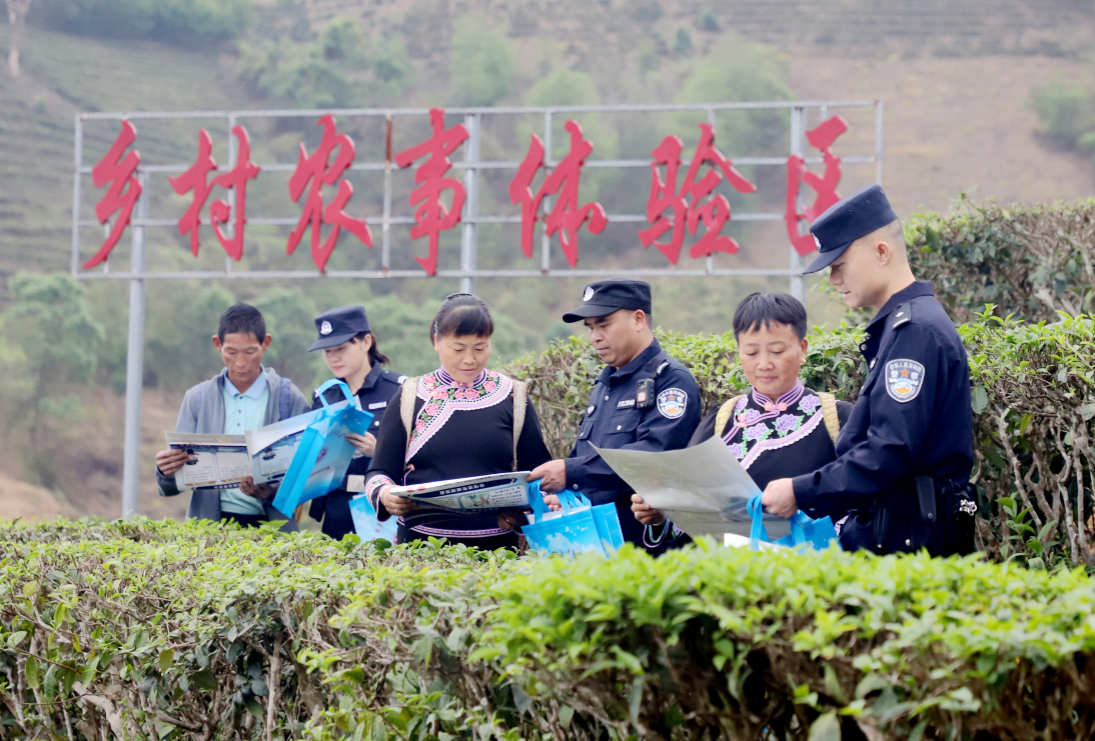 春风拂过群山,茶芽吐露新绿。眼下正值广西壮族自治区百色市西林县春茶采摘的黄金时节,在漫山叠翠的茶垄间,茶农们忙着采收今年第一批鲜嫩春茶。为守护好茶农增收希望的“致富叶”,3月24日,西林县公安局组织民警深入田间茶园,把警务宣传送到茶农身边,用暖心服务筑牢安全防线。