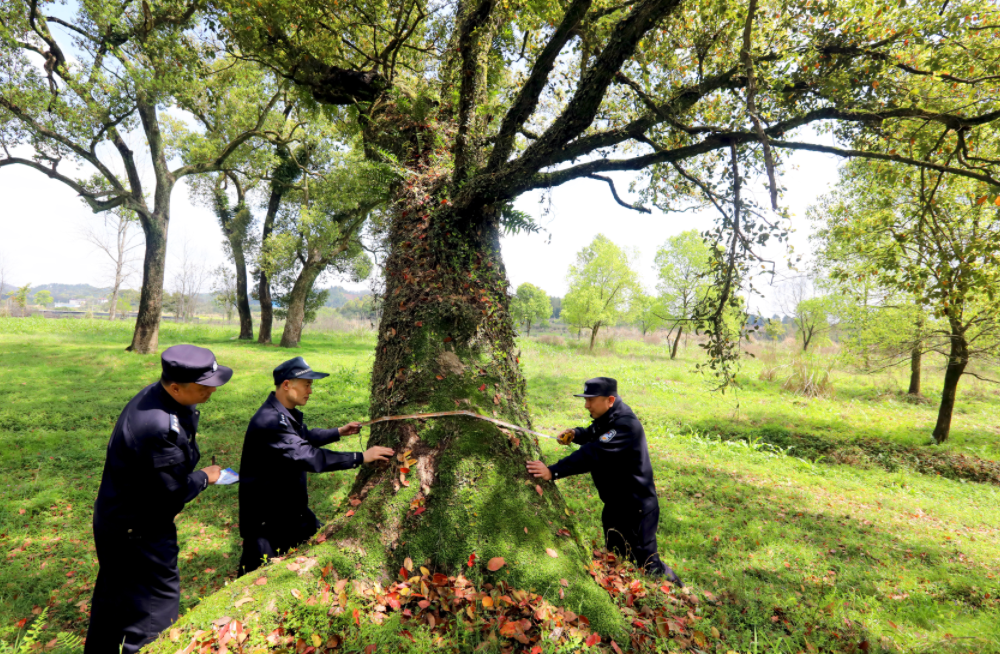 为进一步加强古树名木保护,江西省分宜县公安局森林警察大队组织民辅警对辖区古树名木开展巡护工作,实地查看古树名木周边生态环境、保护标志等设施,排查安全隐患。同时,通过走家串户、拉家常等方式,向群众普及古树名木保护相关法律知识。