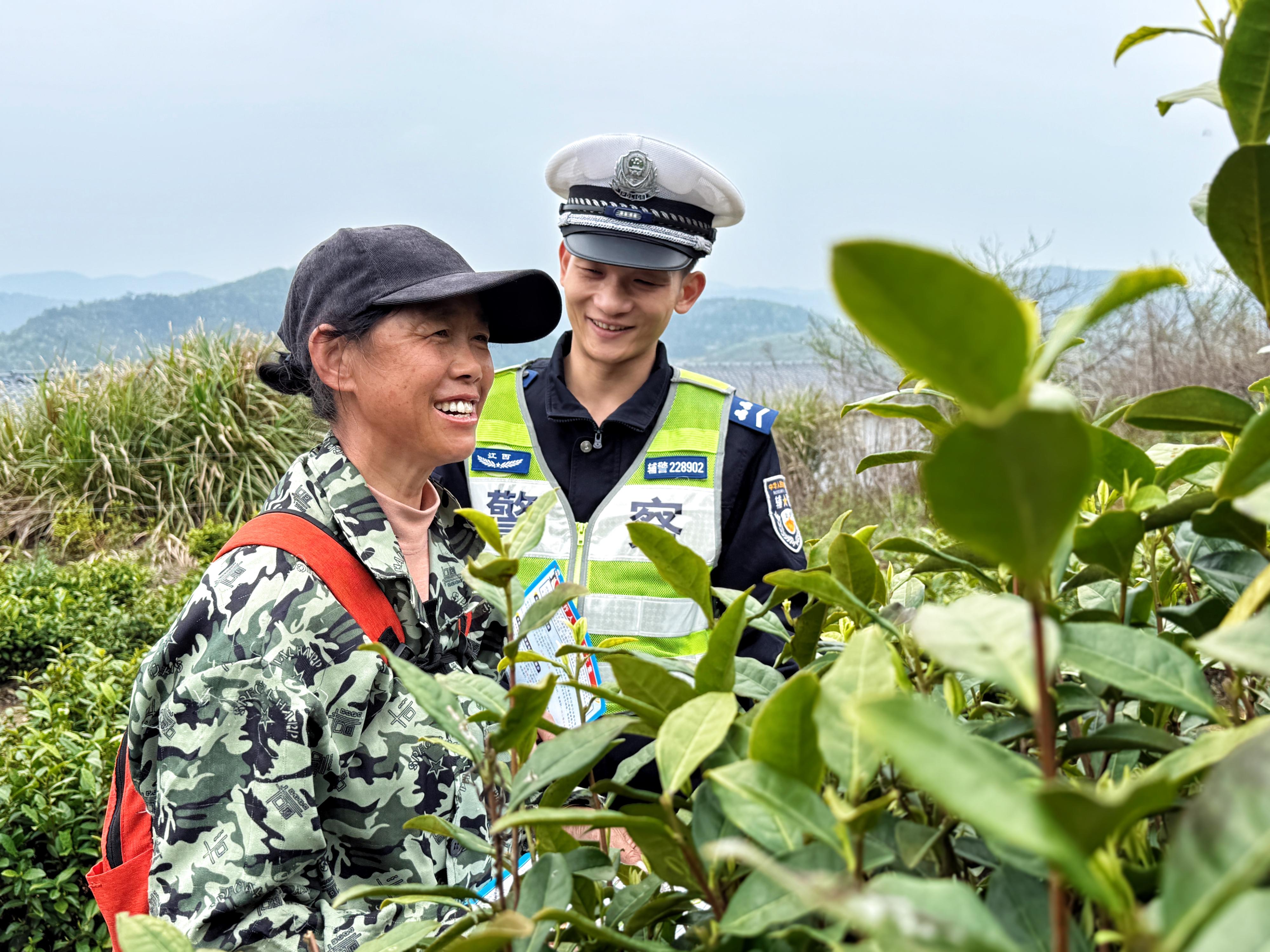 眼下正是清明茶的最佳采摘期,江西省武宁县公安局交管大队柯垅中队组织民辅警走进辖区茶园,通过唠家常、以案说法、互动答疑等方式,向茶农宣传“一盔一带”等交通安全知识,提醒茶农安全驾驶、文明出行。