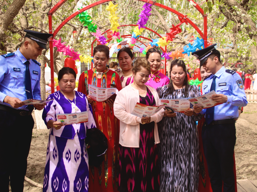 4月10日,新疆新和县塔木托格拉克乡梨花文化旅游节如期而至。梨花竞相绽放,如云似雪,吸引了大批游客和周边群众前来赏花踏青。新和县公安局塔木托格拉克乡派出所的民辅警穿梭在梨园与人群中,开展流动的国家安全教育活动,让法治春风吹进游客心坎里。
