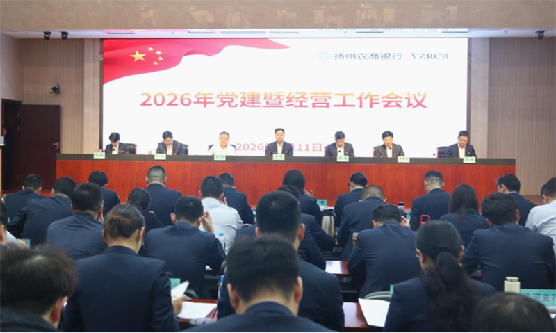 近日,江苏扬州农村商业银行召开2026年党建暨经营工作会议,全面回顾2025年经营管理工作,深刻剖析问题短板,表彰先进典型,并系统部署2026年重点任务,动员全行上下坚定信心、实干攻坚,以价值创造构筑高质量发展新优势,开创转型发展新局面。总行领导班子成员、全行中层管理人员、运营主管、财富经理、客户经理及先进代表参加会议。党委委员、副行长胡伟主持会议。