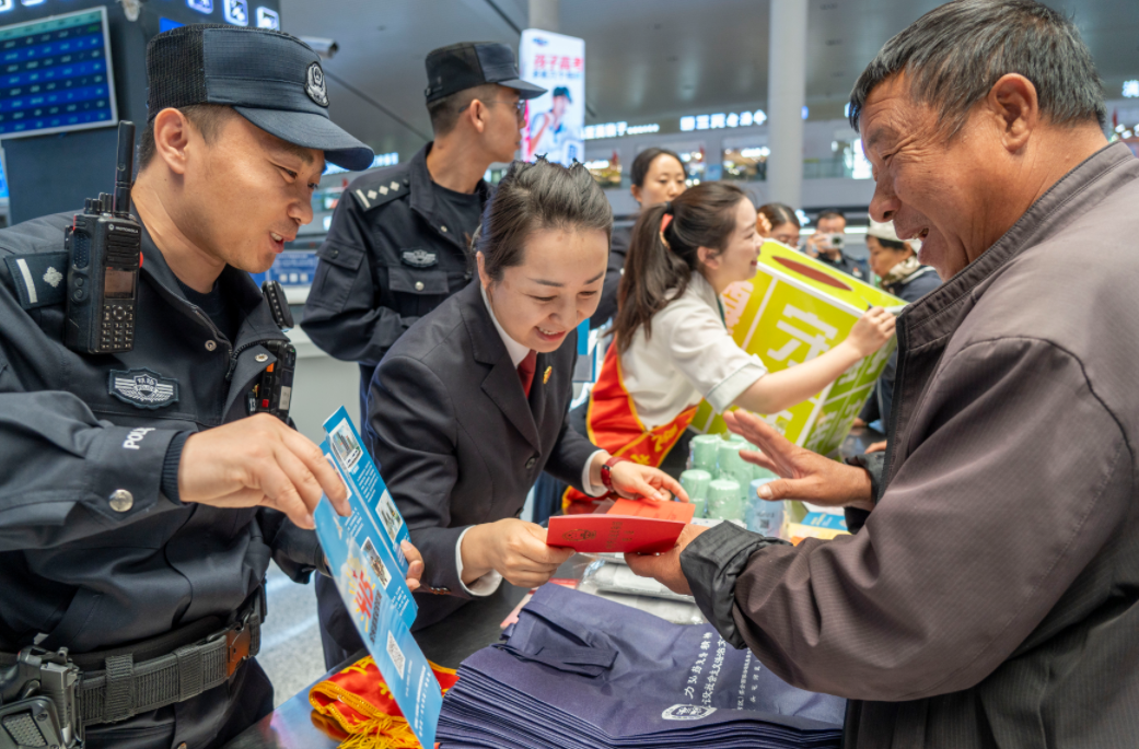 在第十一个全民国家安全教育日来临之际,4月14日,乌鲁木齐铁路公安处乌鲁木齐站派出所联合乌鲁木齐经济技术开发区(头屯河区)司法局高铁司法所、铁路运输检察院,在乌鲁木齐站候车室开展铁路安全普法教育活动。活动现场,普法志愿者通过普法宣讲、典型案例警示、安全知识有奖问答、宣传资料发放、现场法律咨询等多种形式,向群众普及国家安全、铁路护路、出行安全等法律法规知识,有效提升群众法治意识与安全防护能力,营造“国家安全、人人有责”的浓厚氛围。