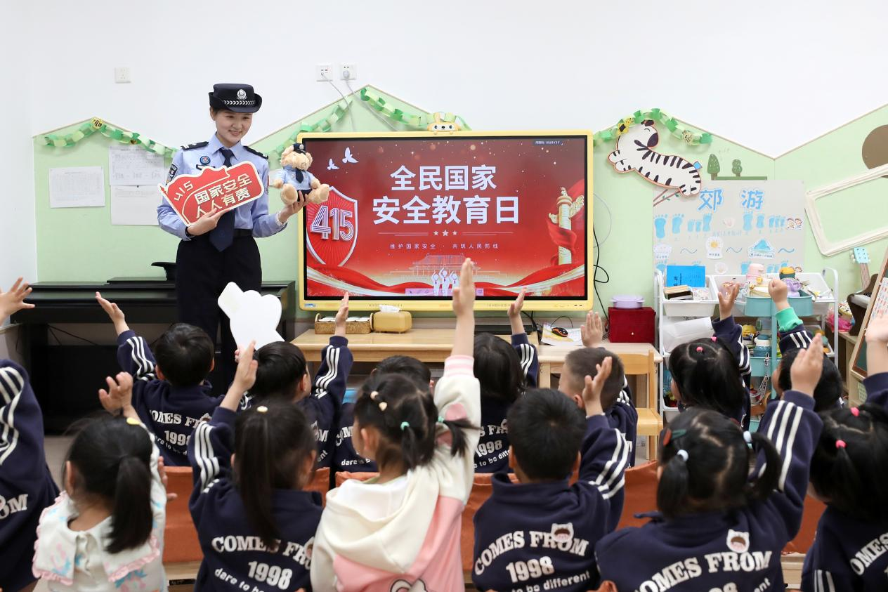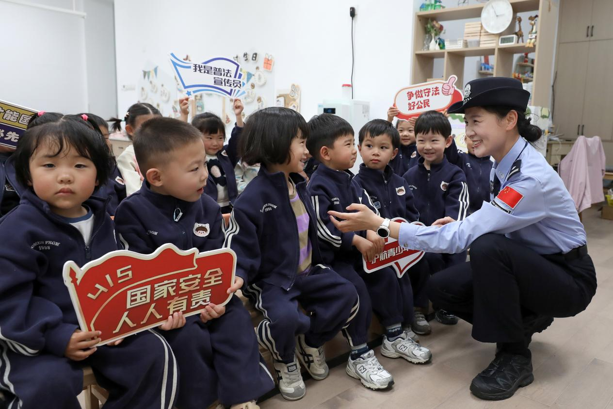 4月13日,在全民国家安全教育日到来之际,为筑牢幼儿安全防护意识,厚植幼小家国情怀,浙江出入境边防检查总站宁波机场边检站民警走进宁波李惠利幼儿园新筑园,开展安全教育宣传活动,以童趣化、互动式形式,为孩子们带来一堂别开生面的安全启蒙课。