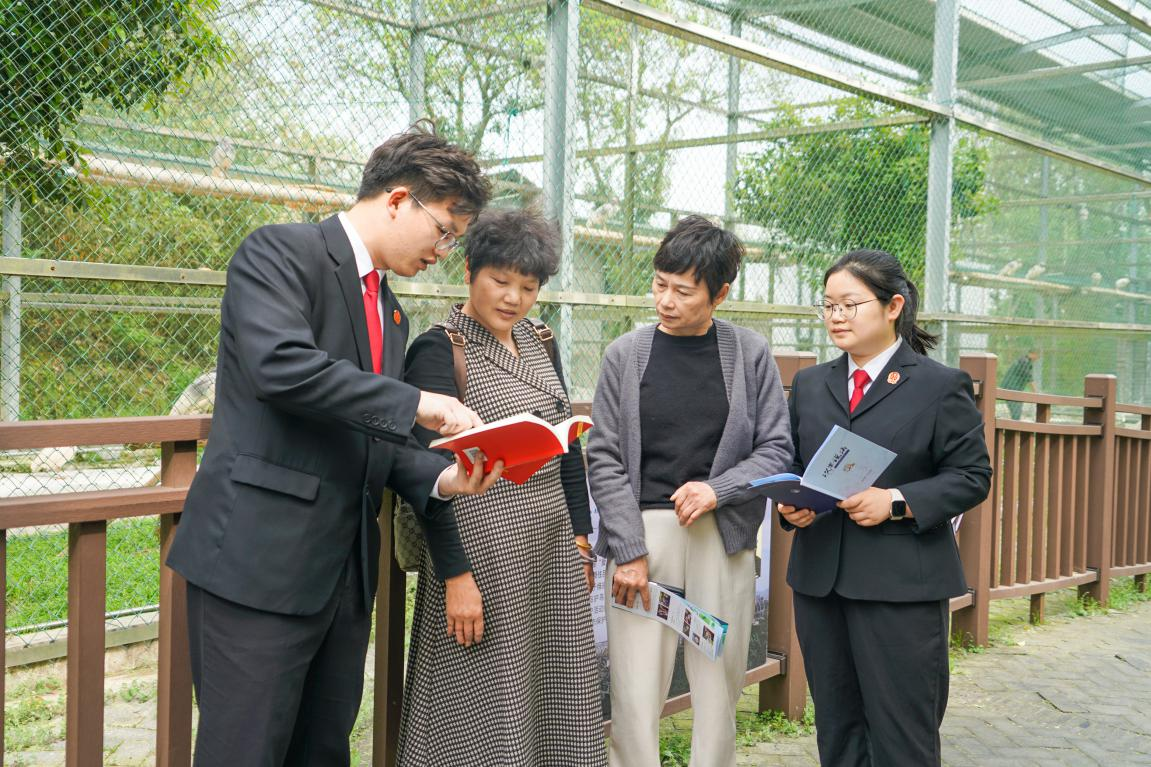 图为干警围绕生态环境法典向游客普及鸟类保护相关知识。