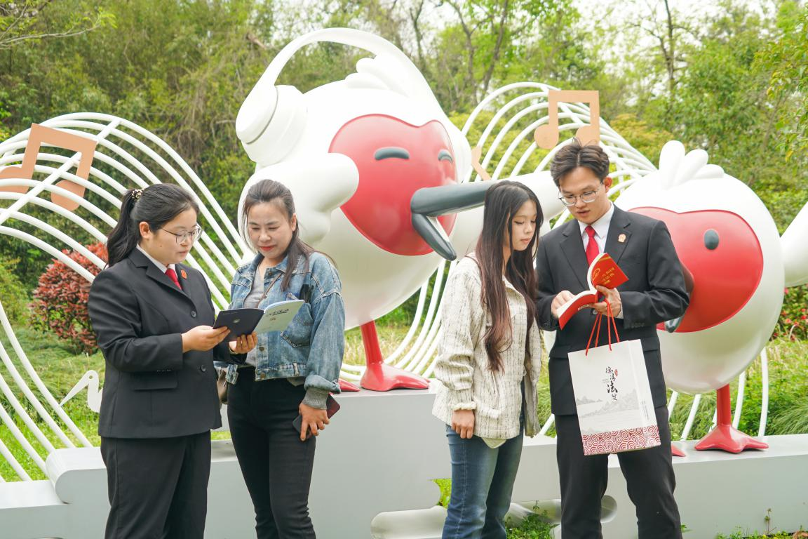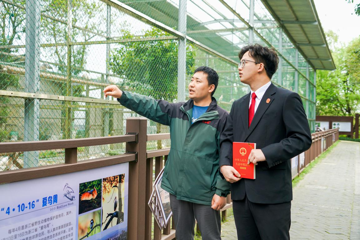浙江省“爱鸟周”来临之际,浙江省德清县人民法院干警走进下渚湖湿地公园开展生态环境法典普法宣传活动。活动中,干警来到朱鹮保护基地,向工作人员了解国家一级保护动物朱鹮的栖息地与繁育情况。同时,围绕生态环境法典中鸟类保护的相关规定,向游客解读法律条文,讲解鸟类保护法律知识,旨在提升公众生态法治意识,护航鸟类家园。